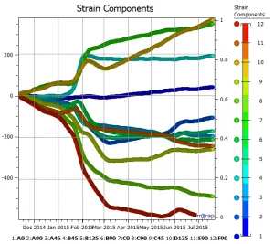 Continual monitoring of in situ stress is done by installing stress measurement devices like the CSIRO stress cell, or vibrating wire stress cell, and monitoring the measured changes over time.This app receives the strain measurement recorded by the stress measurement device and inverts for the in situ stress state.This allows for the analysis of changes in stress magnitude and orientation over time.