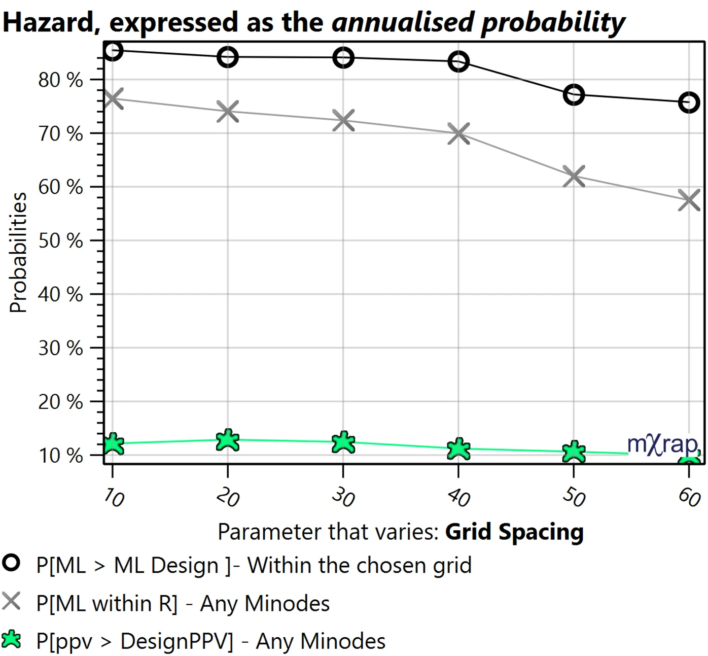 • P[ML > ML Design]: Annualised hazard for the entire volume of the chosen grid (grid points for the chosen volume) to exceed the design magnitude.